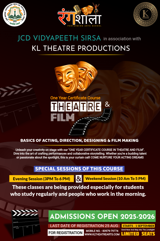 Click Here For Registration In ONE YEAR CERTIFICATE COURSE IN THEATRE & FILM